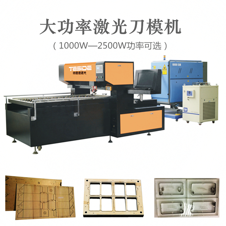 设备型号:TSD-LC1500-1218,TSD-LC1500-1325 激光刀模机应用行业: 印刷,包装,刀模,广告,钣金,灯饰,五金,电器设备,机箱机柜,工艺礼品等。 激光刀模机适用材料: 木板,中纤板,亚克力,铁板,钢板,不锈钢,铝板,铜板等绝大多数金属和非金属材料。 本款机型激光刀模机采用一千五百瓦轴快流二氧化碳激光器,激光功率1500W,18MM刀模板切割速度每小时90-100米。 设备参数:| 型号 | TSD-LC1500-1218 | TSD-LC1500-1325 | | 工作台面 | 1250×1800mm | 1300×2500mm | | 切割精度 | ±0.05mm | ±0.05mm | | 重复定位精度 | ≤0.02mm | ≤0.02mm | | 机床尺寸(长×宽×高) | 3000×2300×1800mm | 3600×2300×1800mm | | 电源电压 | 380V 50Hz 10A | | 激光器类型 | 轴快流CO2激光器 | | 切割材料及厚度 | 6-25mm木板,≤6mm钢板,≤20mm亚克力板,6mm